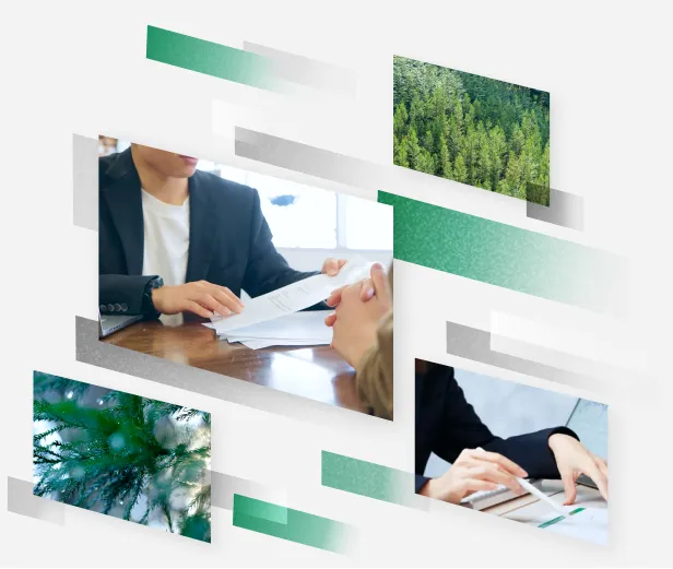 産業全体の情報を集約したデータベースと専門的なノウハウに基づき、社有林を持つ企業、地域資源の有効活用を目指す自治体など、あらゆるステークホルダーの、それぞれの状況に合わせた課題解決を支援します。