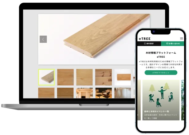 森未来が運営するプラットフォームメディア“eTREE”では、木材を求めるユーザーからのご相談が日々寄せられています。寄せられる多種多様なニーズに対し、SHINMIRAI DataBaseの網羅的なデータから、ユーザーへ最適な解決策を提案しています。